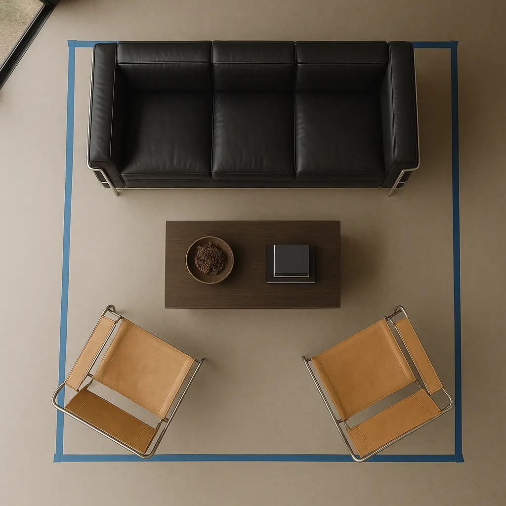 Antes de tomar una decisión, te recomendamos usar cinta de pintor para marcar en el suelo el tamaño de la alfombra que te gusta. Así tendrás una idea muy clara de cómo lucirá en tu espacio y podrás visualizar la mejor manera de acomodar tus muebles. ¡Es la mejor forma de asegurarte de que el tapete encaje a la perfección!
